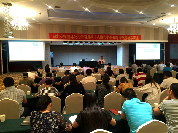 “以講促學(xué),學(xué)深悟透”。24日晚7時(shí),圈環(huán)公司邀請中共湖北省委宣講團理論宣講員、孝感市委黨校楊國忠教授,對圈環(huán)公司全體員工,各監理、施工單位,中心試驗室負責人及重要崗位管理人員近百人開(kāi)展了《全面從嚴治黨再出發(fā),十八屆六中全會(huì )學(xué)習》專(zhuān)題輔導講座活動(dòng)。講座從“聚焦一個(gè)主題、燃旺一個(gè)熔爐、破解一個(gè)難題、明確一個(gè)核心、突出一個(gè)關(guān)鍵”五個(gè)方面詳細解讀了十八屆六中全會(huì )精神的重大意義和深刻內涵,深入學(xué)習了十八屆六中全會(huì )的新思想、新觀(guān)點(diǎn)、新要求。