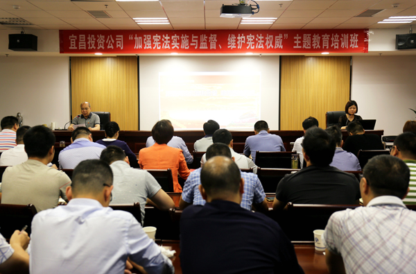 為大力宣傳以憲法為核心的新時(shí)代中國特色社會(huì )主義法律體系,提高全體黨員尊法學(xué)法守法用法意識,自覺(jué)維護憲法權威。5月22日,宜昌投資公司舉辦以“加強憲法實(shí)施與監督、維護憲法權威”為主題的教育培訓班。公司領(lǐng)導班子,各支部書(shū)記、黨員、入黨積極分子,機關(guān)各部室,各子公司部門(mén)負責人共計50余人參加培訓。