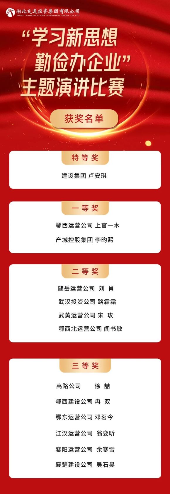 5月4日,正值五四青年節,湖北交投集團“學(xué)習新思想 勤儉辦企業(yè)”主題演講決賽精彩上演,以“青春之名”奏響湖北交投建設世界一流企業(yè)的“進(jìn)行曲”。集團公司黨委副書(shū)記、總經(jīng)理付明貴出席并講話(huà),在家領(lǐng)導班子成員出席活動(dòng)。
