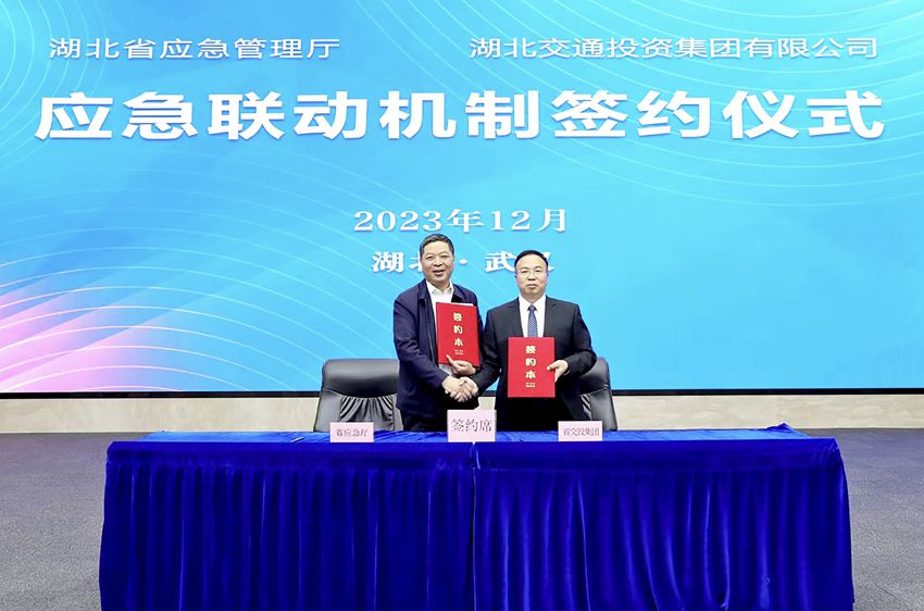為深入貫徹落實(shí)習近平總書(shū)記關(guān)于應急管理重要論述和黨的二十大精神,著(zhù)力提升我省突發(fā)事件協(xié)同處置能力,12月8日,湖北交投集團與省應急管理廳簽署應急聯(lián)動(dòng)工作機制協(xié)議。省應急管理廳黨委委員、副廳長(cháng)楊光武,湖北交投集團黨委委員、副總經(jīng)理、總法律顧問(wèn)羅壽龍代表雙方簽署協(xié)議。