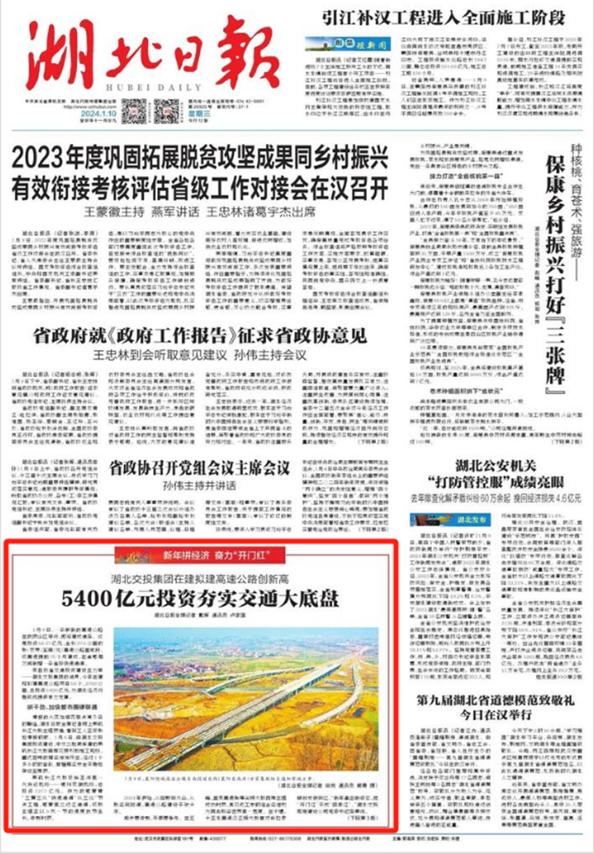 來(lái)自我省交通投資建設主力軍——湖北交投集團的消息,今年在建和擬建高速公路項目50個(gè)、2700公里,總投資5400億元,為湖北經(jīng)濟行穩致遠提供有力支撐。