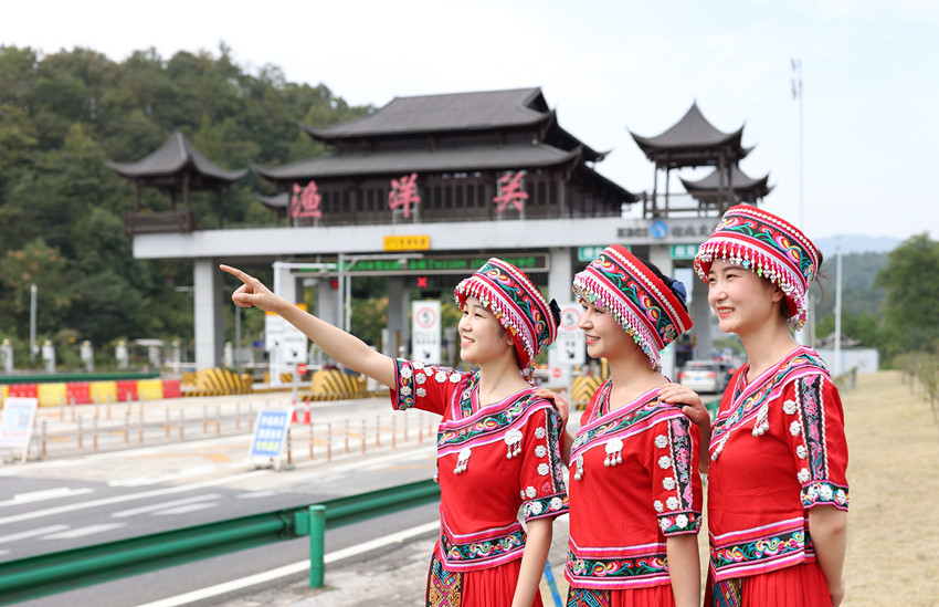 漁洋關(guān)收費站身著(zhù)民族服飾的收費員