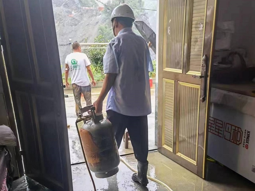 事情還要從10天前說(shuō)起。7月11日,正值主汛期,由湖北交投集團建設的十巫南高速三標項目安全部負責人魏友安正在施工現場(chǎng)周邊進(jìn)行防汛巡查工作。經(jīng)過(guò)竹溪縣兵營(yíng)鎮明家梁村一處民房時(shí),聽(tīng)到有人大聲呼救,同時(shí)房屋冒出大量濃煙。聽(tīng)到呼救后,魏友安立即沖了上去,緊急疏散了屋內人員后立即撥打119,此時(shí)熊熊火焰吞噬整個(gè)廚房,煤氣罐吐著(zhù)“火舌”,隨時(shí)都有爆炸風(fēng)險。危急時(shí)刻,魏友安憑借著(zhù)豐富的安全知識沉著(zhù)應對,用水霧推氣降低煤氣密度,避免待燃燒區域后續爆燃,待現場(chǎng)降溫滅火后用濕抹布將煤氣罐挪出屋外安全區域。